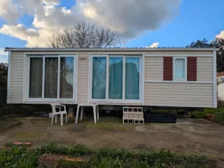 Vendo mobilhome de 33m2, distribuidos en un amplio salón, dos habitaciones, un baño con la ducha y otro con el váter y cocina equipada. Lo mejor de esta casita es que la pared frontal es una ventana corredera por lo que es mucho más luminosa que otras y la cocina está en una habitación independiente. Dispone de calefacción en todas las habitaciones y aire acondicionado en el salón. Están incluidos en el precio también la nevera y los muebles. El transporte va por cuenta del comprador pero puedo facilitar contactos.