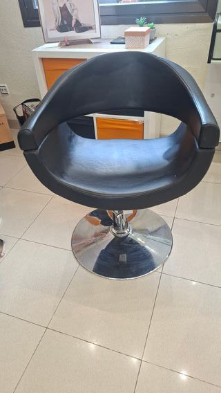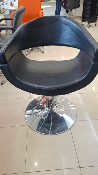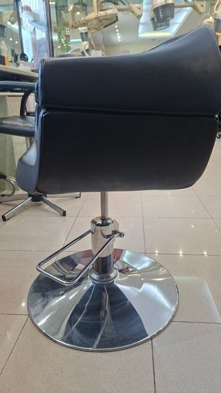 Sillón de peluquería con un diseño moderno y elegante en color negro. Su base redonda cromada le da un toque de estilo. - Tapicería de cuero sintético. - Base redonda cromada. - Altura ajustable. 60€ uno y los tres 150€.