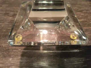 2 candelabros VERSACE de cristal de 15CM uno en perfecto estado y el otro con las marcas que se ven en la foto - Material: Cristal. - Diseño: Medusa grabada en el pie.