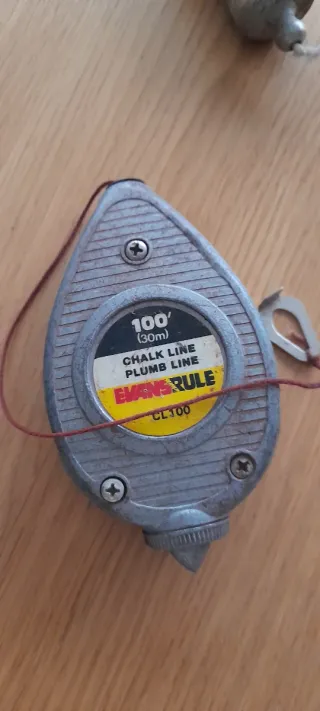 Marcadora de tiza y plomada de la marca Evans Rule. - Longitud de 100 pies (30 metros). - Modelo CL100.