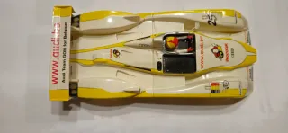 Carrocería de coche de competición Audi Team GO4 Belgium para Scalextric pro. - Diseño blanco y amarillo. - Detalles de patrocinadores como Takara y Elf. - Número de carrera 25.
