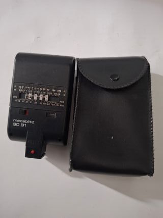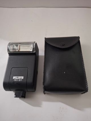 Flash Metz Mecablitz 30B1 en color negro, con su funda protectora. - Flash Metz Mecablitz 30B1.(253011062TW) - Funda de cuero negra.