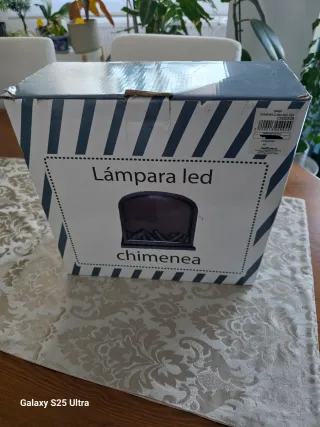 Lámpara decorativa con efecto de chimenea y troncos. - Diseño con marco negro. - Efecto de luz LED. - Troncos decorativos. No calienta