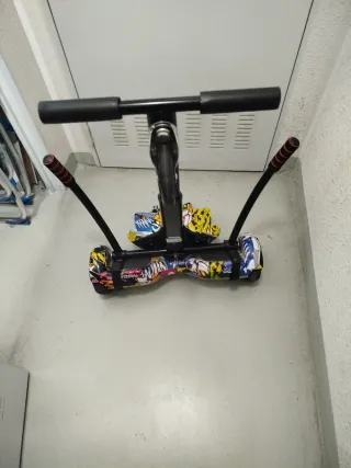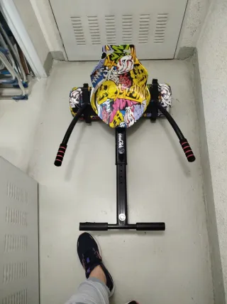 Este Jober Vork cuenta con un asiento llamativo y colorido con un diseño de cómic. - Asiento con estampado de cómic. - Manillar negro con empuñaduras rojas. - Base en forma de T.