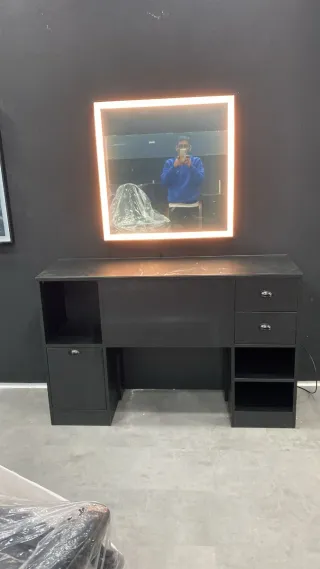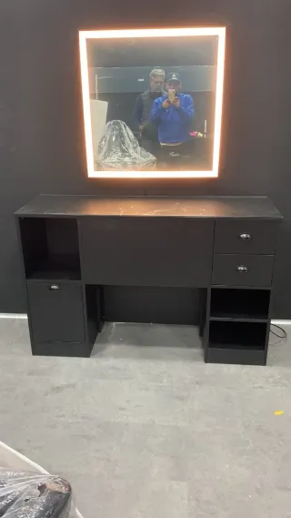 Espejo de barbería con iluminación LED. - Medidas: 80 x 80 cm. - Diseño moderno con marco iluminado con luz led Hay 5 unidades