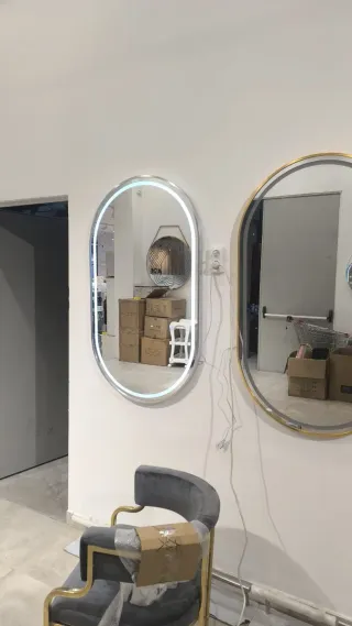 Elegante espejo ovalado con iluminación LED. - Marco disponible en oro, plata - Diseño moderno y sofisticado. - Ovalado - Medialuna - maquillaje