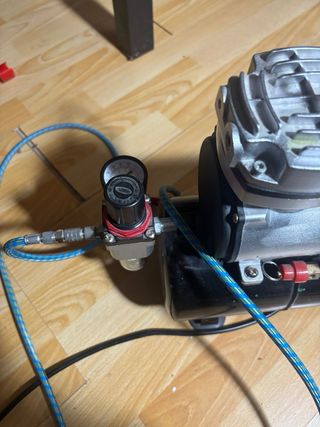 Compresor de aire Fengda FD-186 con depósito de 3 litros. Ideal para aerografía. Incluye aerógrafo - Modelo: FD-186 - Potencia: 125W - Flujo de aire: 20-21 L/min - Presión de aire: Auto Start 3 bar / Auto Stop 4 bar - Voltaje: 220-240V / 50Hz