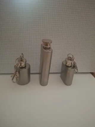 Conjunto de tres mini petacas metálicas, perfectas para llevar tus bebidas de forma discreta. - Fabricadas en metal. - Incluyen llavero para facilitar su transporte. - Diseño compacto y elegante.(251312092TW)