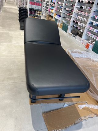 camilla de masaje negra con estructura metálica eléctrica de 2 cuerpos - Tapicería de cuero sintético. - Respaldo ajustable. de manera electivca