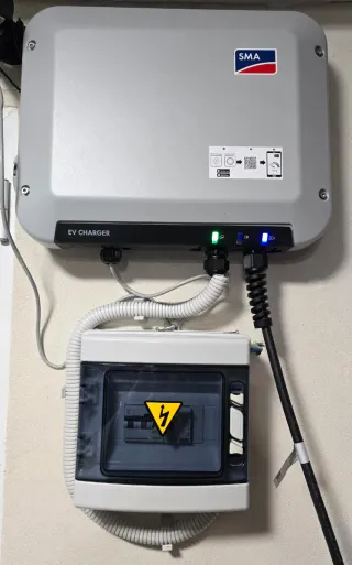 Cargador SMA para vehículos eléctricos de 7.4 kW + Caja de protecciones Legrand. Con embalajes e instrucciones, en perfecto estado, se vende por falta de uso. Precio habitual € 2.184. De aplicación universal Compatible con todos los vehículos eléctricos comunes Integración en plantas fotovoltaicas nuevas y existentes Facilidad y sencillez Función de carga rápida monofásica en redes de hasta 7.4 kW Control y visualización a través de la aplicación SMA Energy. Máximo aprovechamiento de la energía fotovoltaica Carga sin emisiones Máxima tranquilidad Seguridad mediante la protección contra apagones.
