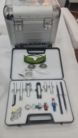 Se vende equipo K laser nuevo con muy poco uso. Cuenta con todas sus pubras y cabezales Se liquida maletín K Laser con todos sus accesorios. Motivo de la venta no se usa . - Incluye gafas protectoras verdes. - Diversos aplicadores y puntas metálicas. - Cable y otros componentes.