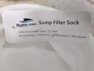 Calcetín de filtro para sump de la marca Bubble Magus. - Diámetro del collar: 4 pulgadas - Calificación de micras: 100 micras