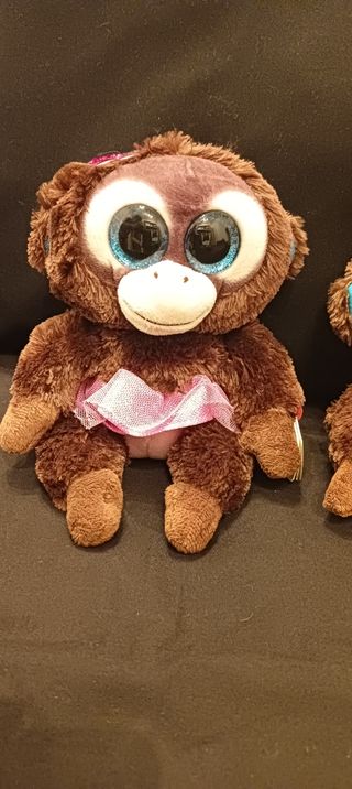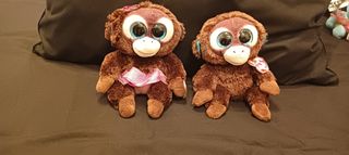 Preciosa pareja de peluches ojotes, son dos monitos suaves con sus etiquetas.