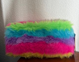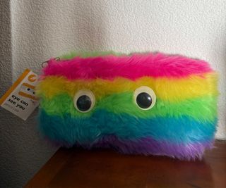 Estuche de peluche con un diseño divertido de arcoíris y ojos. - Colores vibrantes: rosa, amarillo, verde, azul y morado. - Textura suave y esponjosa. - Cierre de cremallera. -Cualquier cosa no dude en consultar.