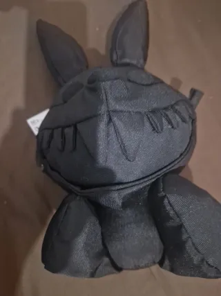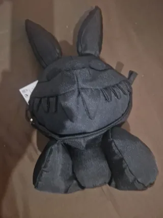 Peluche negro con un diseño divertido y orejas de conejo. Ideal para coleccionar o regalar. - Material de tela. - Color negro. - Diseño de conejo.