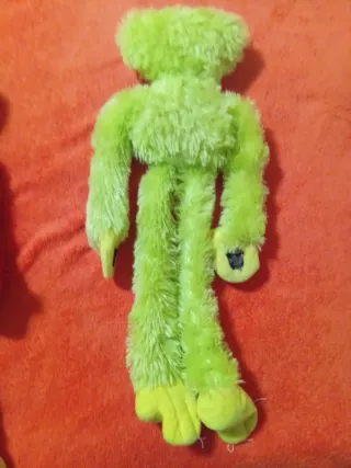 Peluche suave y divertido con forma de Huggy Wuggy. - Color verde brillante. - Textura peluda. - Diseño característico con boca sonriente y dientes.