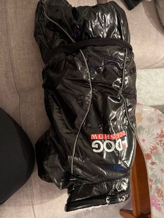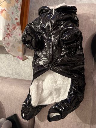 Es un enterizo de perro pequeño(mediano, las medidas son aproximadas), es térmico e impermeable para lluvia y con peluche dentro. Sin usar. Medidas: Pecho-50cm Largo-40