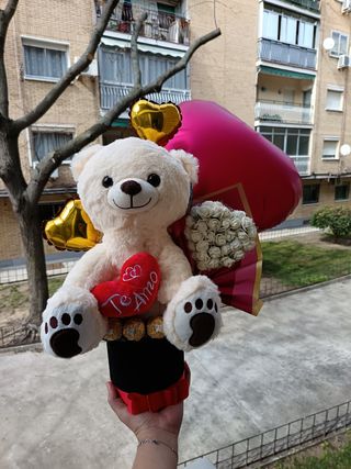 Regalo San Valentín Oso Peluche Chocolates Flores