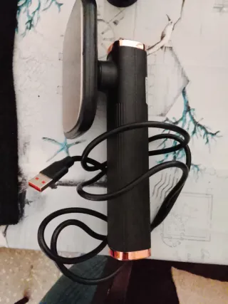 Plancha de vapor portátil con diseño moderno y compacto. Ideal para viajes o retoques rápidos. - Color negro con detalles dorados. - Cable USB incluido para carga.