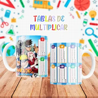 Taza con diseño de tablas de multiplicar y personajes de anime o Disney - Tablas de multiplicar impresas.