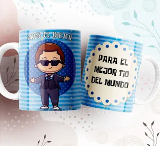 Set de dos tazas con diseños originales y frases motivadoras. - Taza con ilustración de un hombre con traje y gafas de sol. - Taza con diseño Para el mejor tío del mundo. - Ideales para regalar.
