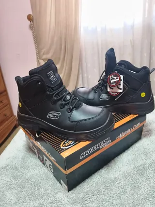 Botas de trabajo de la marca Skechers. Diseñadas para ofrecer comodidad y durabilidad. Puestas solo 5 horas y vendo por equivocación de talla . Talla N44 eur.Me costaron 110 eur - Materiales resistentes. - Suela antideslizante. Puntera reforzada.