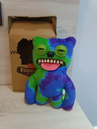 Peluche de Fuggler Zuru Monsters con un diseño único y llamativo. - Diseño tie-dye en colores verde, azul y morado. - Ojos saltones y boca con dientes. - Lengua rosa de fieltro. - Nariz negra.