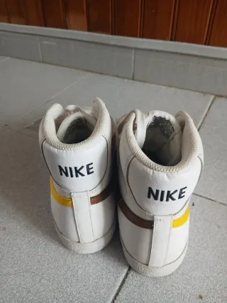 Zapatillas altas de la marca Nike con un diseño clásico. - Color blanco con detalles en amarillo. - Cierre de cordones.