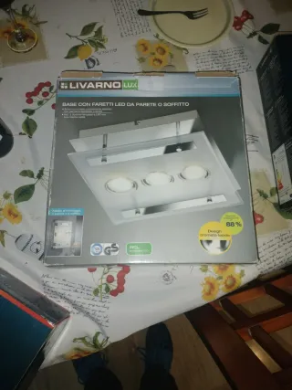 Lámpara de techo o pared LivarnoLux con focos LED. Diseño moderno y elegante. - Base con 3 focos LED. - Ahorro energético del 88%.