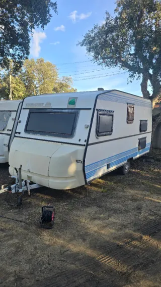 Caravana clásica para reformar ideal para dejar fija en terreno, camping,no dispone de documentación. Exterior de color blanco y detalles marrones.