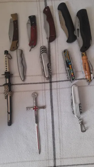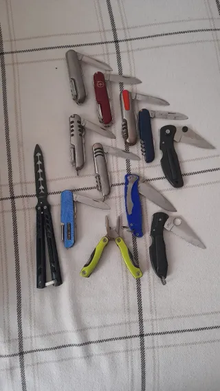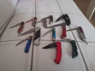 Se vende lote de 12 navajas multiusos de diferentes modelos y diseños. Alguna tiene.un poco de óxido