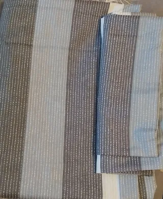 Lote de 2 fundas nórdicas para cama de 90. A estrenar Una con diseño de "rayas" en tonos tostado, gris, azul y blanco. Funda de almohada grande. Otra en tono verde pastel con diseños vegetales el blanco. Esta es reversible y el otro lado es verde pastel en tono liso. Funda de almohada grande. Ambas fundas de algodón, amplias que cubren perfectamente toda la cama Nunca usadas. Nuevas a estrenar Una 10€