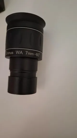 Ocular Omegon Cronus 7mm WA 60°. Usado dos veces, me han regalado uno superior. Posición cómoda: Distancia interpupilar de 16 mm Posible observar con gafas Ocular de goma adaptable Gran angular: Campo visual de 60º Recubrimiento múltiple en todas las superficies de aire/vidrio Compatible con cabezales binoculares Diámetro de conexión 1,25" Rosca de filtro de 1,25" Nuevo costó 79€. Telescopio, astronomía, Skywatcher, Meade, Orion...