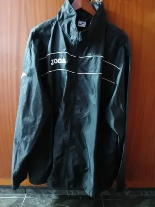 Chubasquero negro de la marca Joma. - Cierre de cremallera. - Diseño con detalles blancos. - Cuello alto.