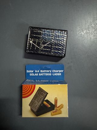 Cargador de pilas AA que funciona con energía solar. Ideal para mantener tus pilas recargables listas para usar. - Diseño compacto y portátil. - Panel solar integrado.