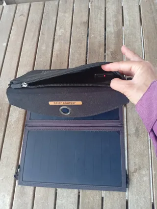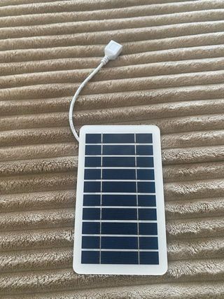 Panel solar portátil para cargar dispositivos móviles y tablets. Ideal para llevar de viaje o usar en exteriores.Nuevo sin usar - Diseño compacto y ligero. - Conexión USB universal.