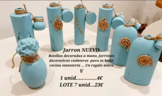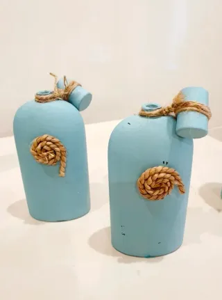 Conjunto de dos botellas decorativas de color azul claro, adornadas con cuerda. Regalo navidad baño estanteria adorno - Diseño náutico. - Acabado mate. - Detalle de cuerda en espiral. 4€/unid LOTE 7 UNID.....23€ Disponible + en mi perfil jarron violetero Tengo + antiguo coleccion mantel cómodas maquina coser cuadro marco do acero militar emblemas hebillas botones rosarioscollar lamparas plafon vintage retro puntilla ganchillo jarron cristal plata decoracion aparador castaño tarros botes cocina salon sala dormitorio matrimonio colchón mueble-bar mesa comedor sillas mesa Diseño centro decoracion moderna dvd Oeste VHS Disney Cuber