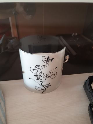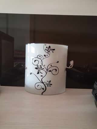 plafón de cristal con dibujo, para una bombilla. hace semicírculo para acoplar perfectamente en la pared. está impecable. 21 x 20