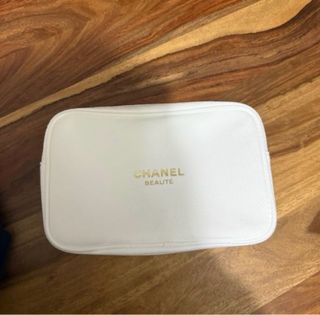 Neceser de la marca Chanel en color blanco. Un accesorio elegante y práctico. - Logo CHANEL BEAUTE en dorado. - Cierre de cremallera dorada.