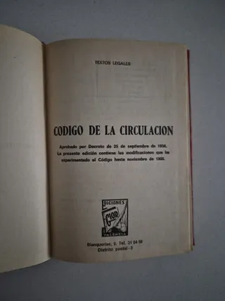 Libro Código de la Circulación de 1967. - Edición actualizada con las disposiciones más recientes. - Publicado por Ediciones Bior.