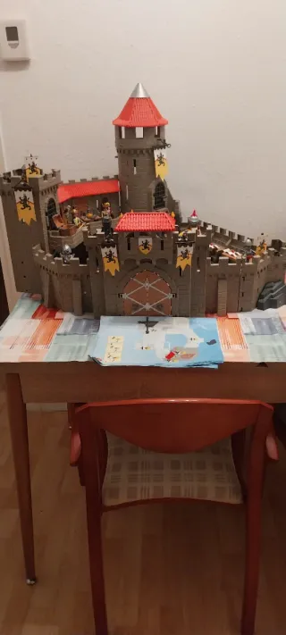 Castillo de Playmobil con accesorios y figuras. - Incluye varias banderas. - Puerta principal con detalles. - Torre central con tejado rojo.Tiene la boleta como seve en la penúltima foto tiene trozo partido en torreón se puede arreglar.El castillo lo he montado lo mejor posible xq no tengo ni idea