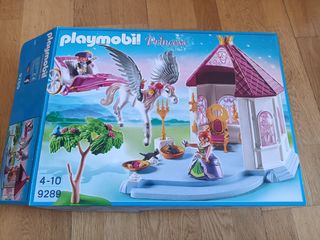 Playmobil Princess 9289. Castillo, Caballo Alado Pegaso y Carroza. En su caja original. Abierto, montado y vuelto a meter en la caja. Falta un piececita blanca, la puedes ver en la última foto, de las instrucciones.