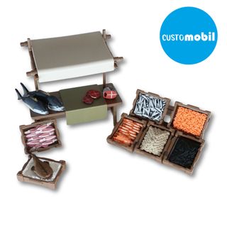 Rape custom para bandeja del mercado de Playmobil, compatibles con las cajas para el mercado. Diseñado e impreso en 3D. Ideales para tus dioramas, mercado o belén. - Precio por unidad - El hielo se vende por separado (0,90€). - La caja apilable se vende por separado. (0,90€). Nuestras creaciones y diseños están dirigidos a dioramas y colecciones, no son un juguete.