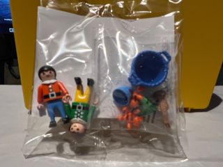 Set de figuras y accesorios de Playmobil. - Incluye dos figuras de Playmobil. - Accesorios como un cubo y otros elementos.