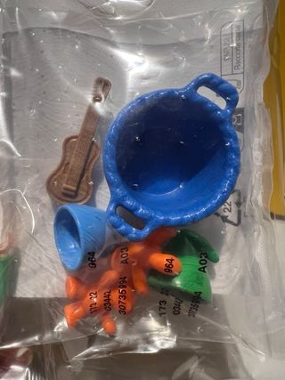 Se venden figuras y accesorios Playmobil. Están en buen estado y son ideales para ampliar tu colección. - Incluye dos figuras completas: un vaquero y un faraón. - También se incluyen varios accesorios, como un sombrero, una vara, un instrumento musical y otros elementos. - Las bolsas están sin abrir.