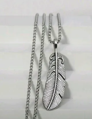 Elegante conjunto de cadena con colgante en forma de pluma. - Diseño detallado de pluma. - Cadena de eslabones