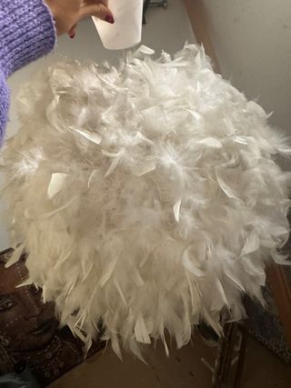 Lámpara de techo con un diseño original y elegante, cubierta de plumas blancas que aportan un toque de suavidad y calidez. - Material: Plumas - Color: Blanco