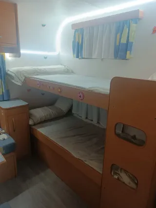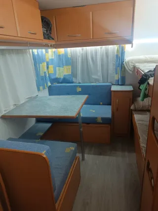 Caravana modelo Pluma con tres ambientes, ideal para escapadas. - Diseño interior acogedor. - Camas listas para usar. - Ventanas con cortinas, mosquiteras y oscurecedores. - Aire acondicionado. - ITV pasada hasta julio de 2027. Ver sin compromiso