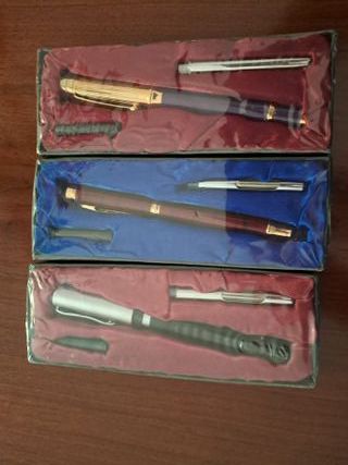 Conjunto de tres plumas nuevas, listas para usar. El envase está precintado, nunca han sido utilizadas. - Empaque sellado.