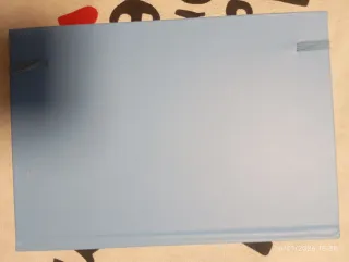 Libreta nueva azul con plumas y goma